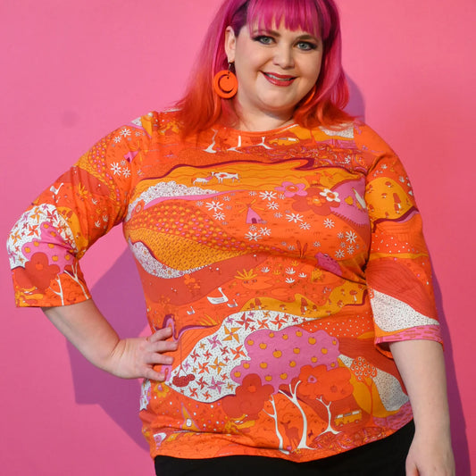 Landscape Print 3/4 Sleeve Tee in Hot Tones