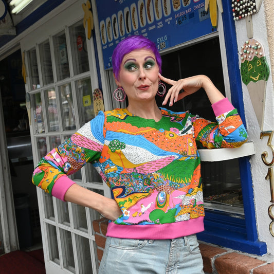 Landscape Pullover in Rainbow with Fuchsia Cuffs
